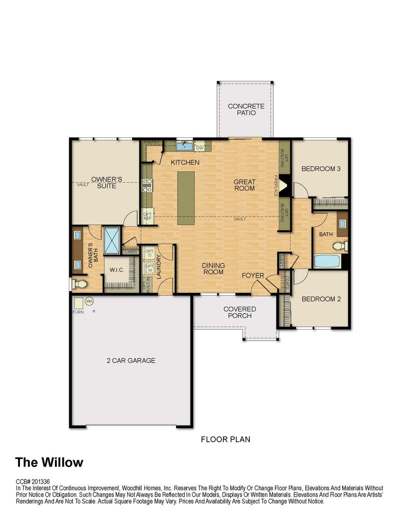 The Willow B floor plan offers 1480 SQFT, 3 bedrooms, 2 bathrooms, and a 2 car-garage.