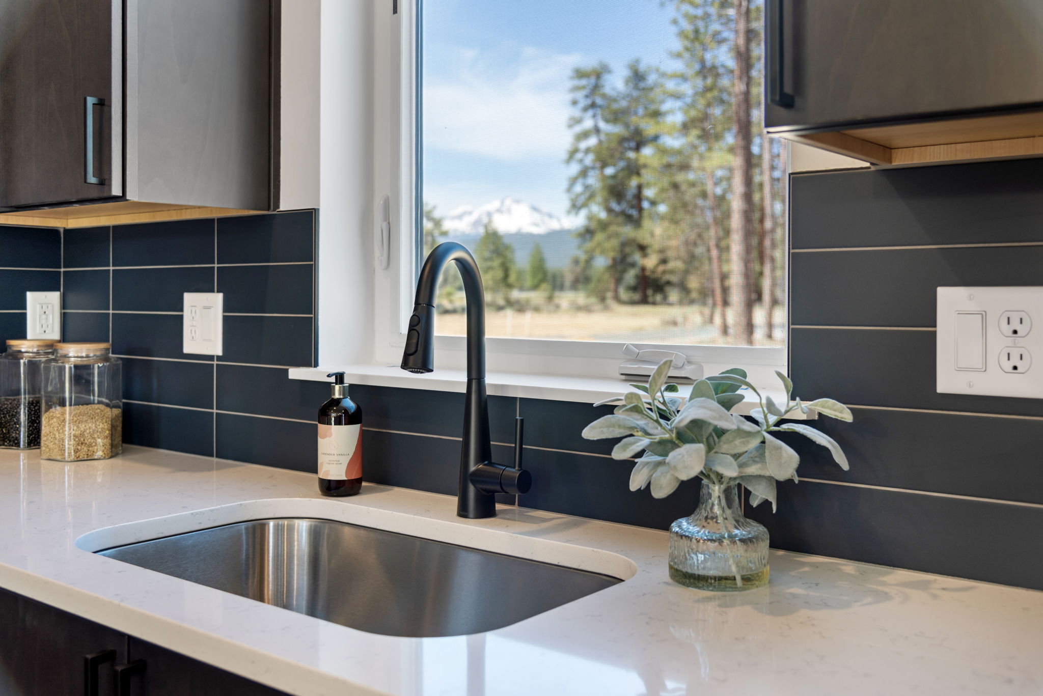 •Large windows in the loft space and bedrooms offer natural light and views of the surrounding landscape.