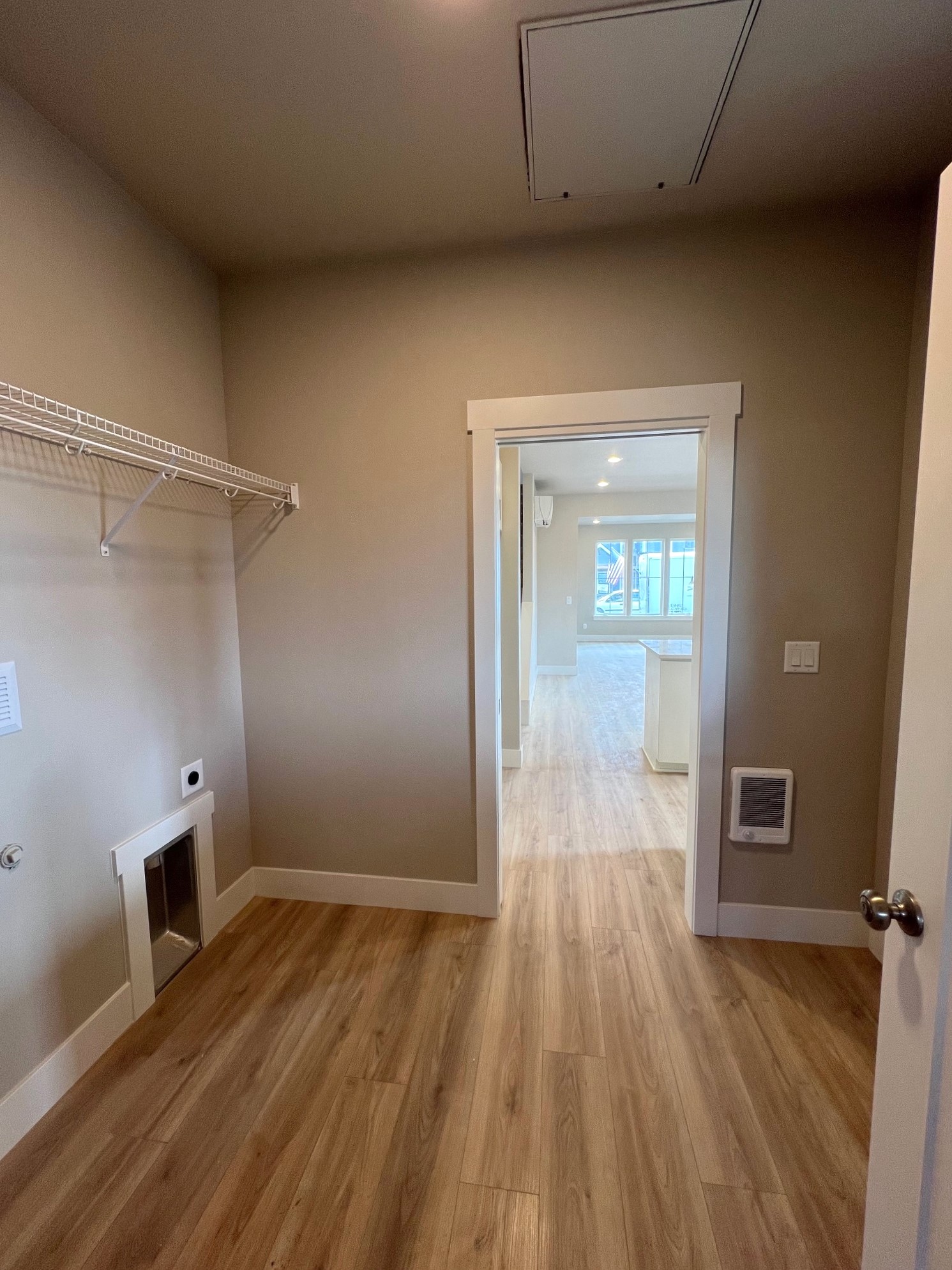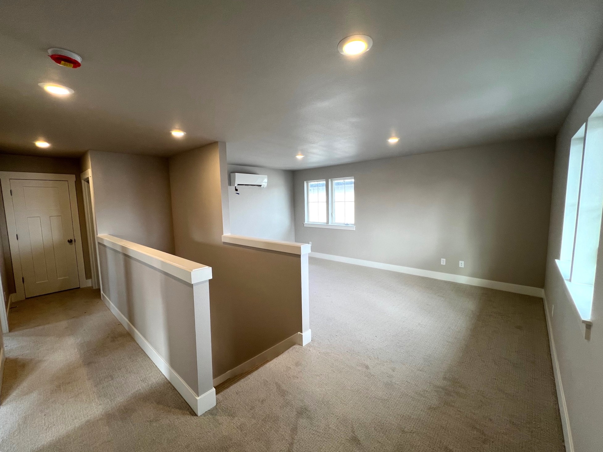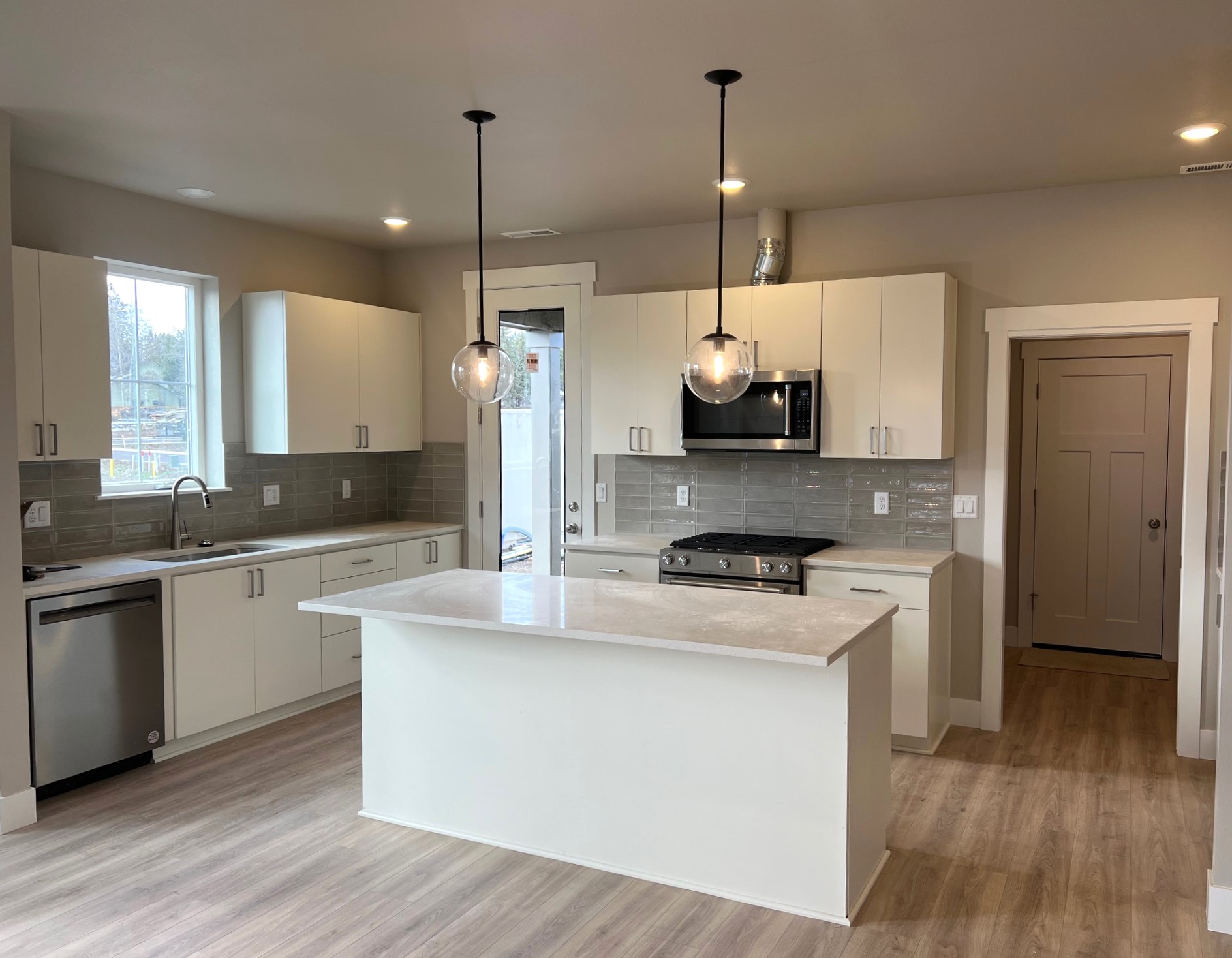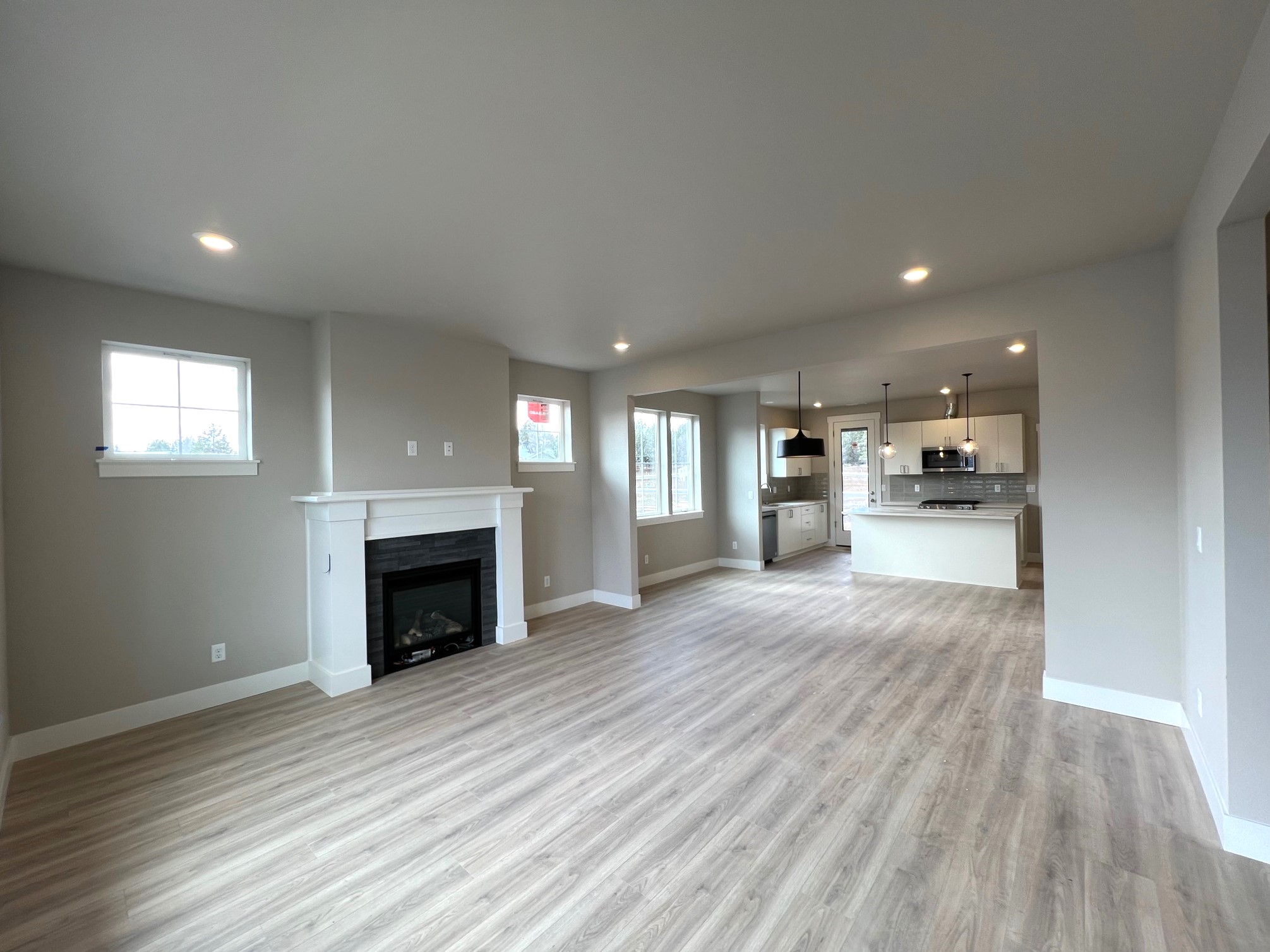 As you enter through the front door of this beautiful home you're welcomed into a bright, open great room with a gas fireplace, dining area and spacious kitchen. The main level also includes the primary bedroom suite, utility room and powder bath. Upstairs includes 2 additional bedrooms, full bath +loft area. The kitchen features solid surface counters, tile backsplash and stainless-steel appliances. Durable, modern, laminate floors throughout the main living area, bathrooms and utility room. Bathrooms feature solid surface counters and backsplash. Primary has dual vanity, tile shower & walk-in closet. The ductless heating system provides heating & cooling comfort year-round. This beautiful home includes a covered rear patio and an alley-load garage.