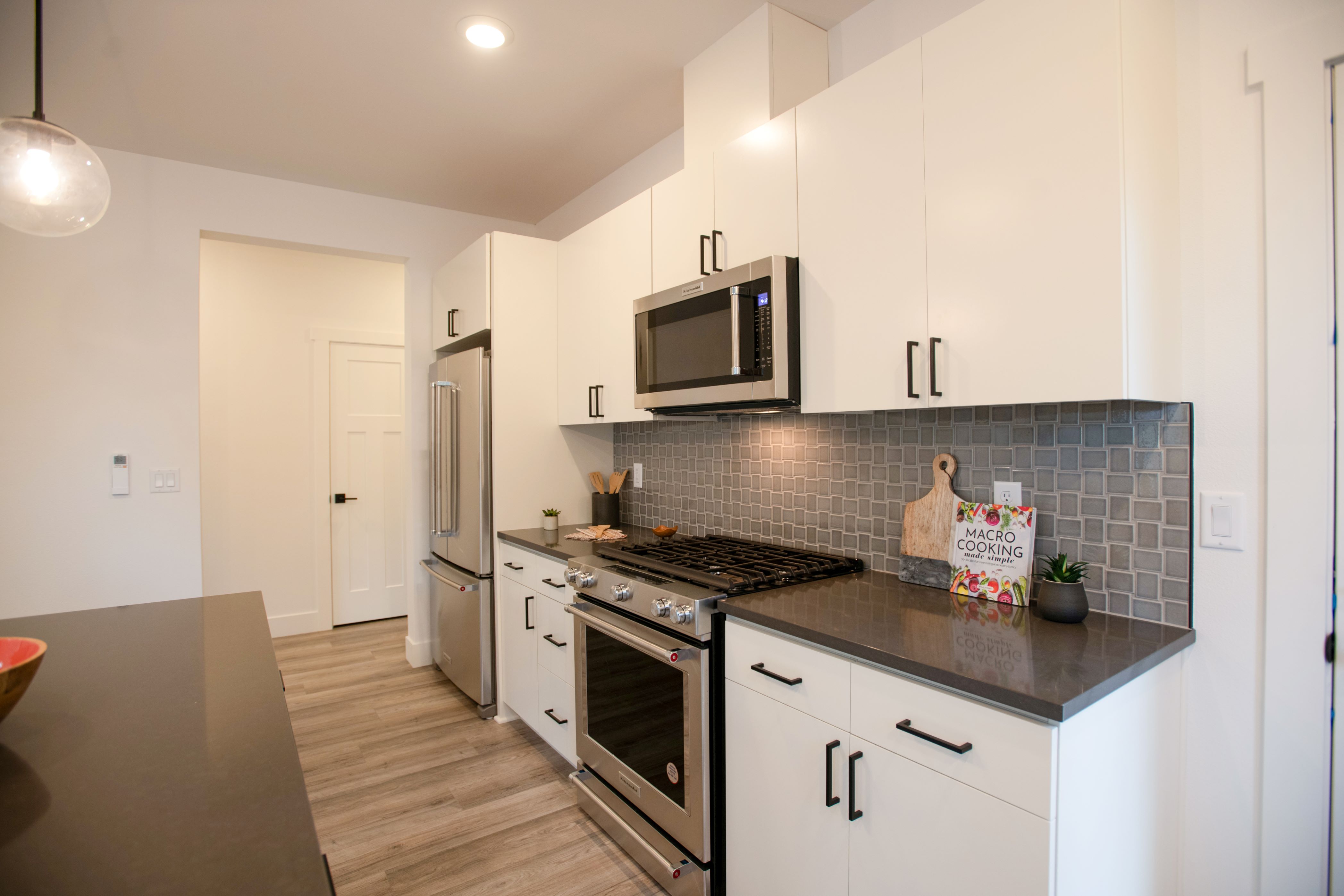 •The kitchen is designed with modern, stainless steel appliances, ample cabinet space, and a large island for casual dining and entertaining.