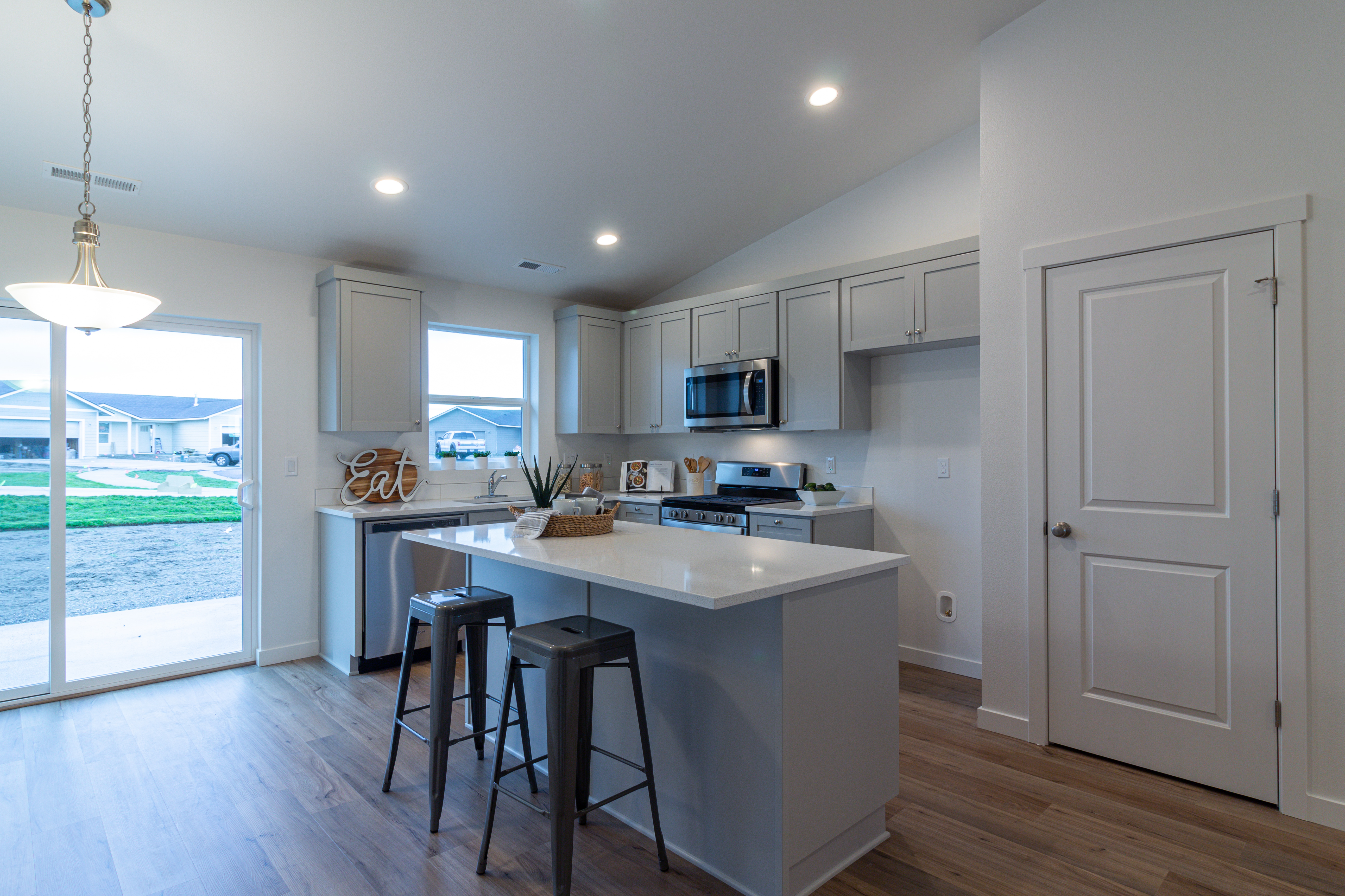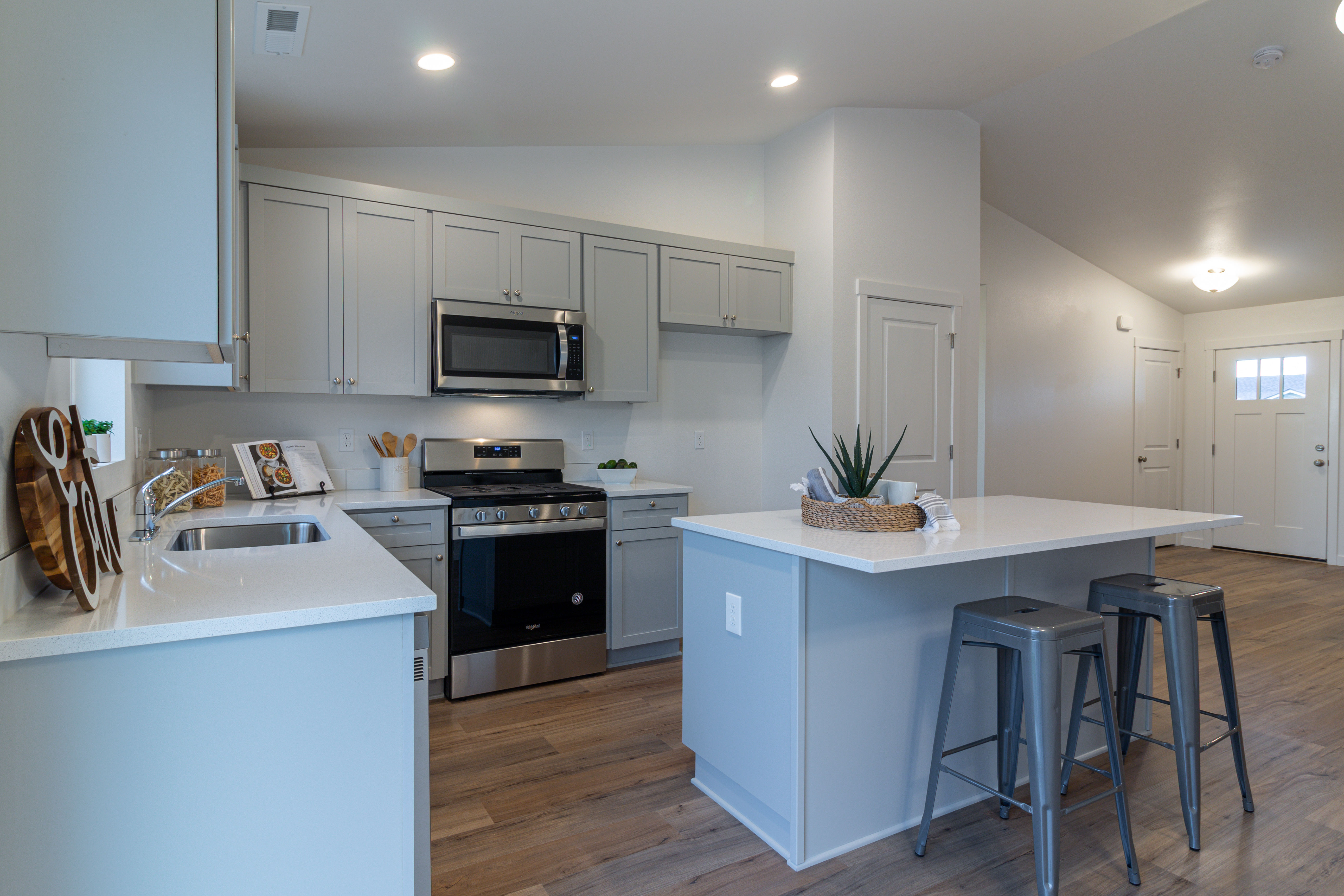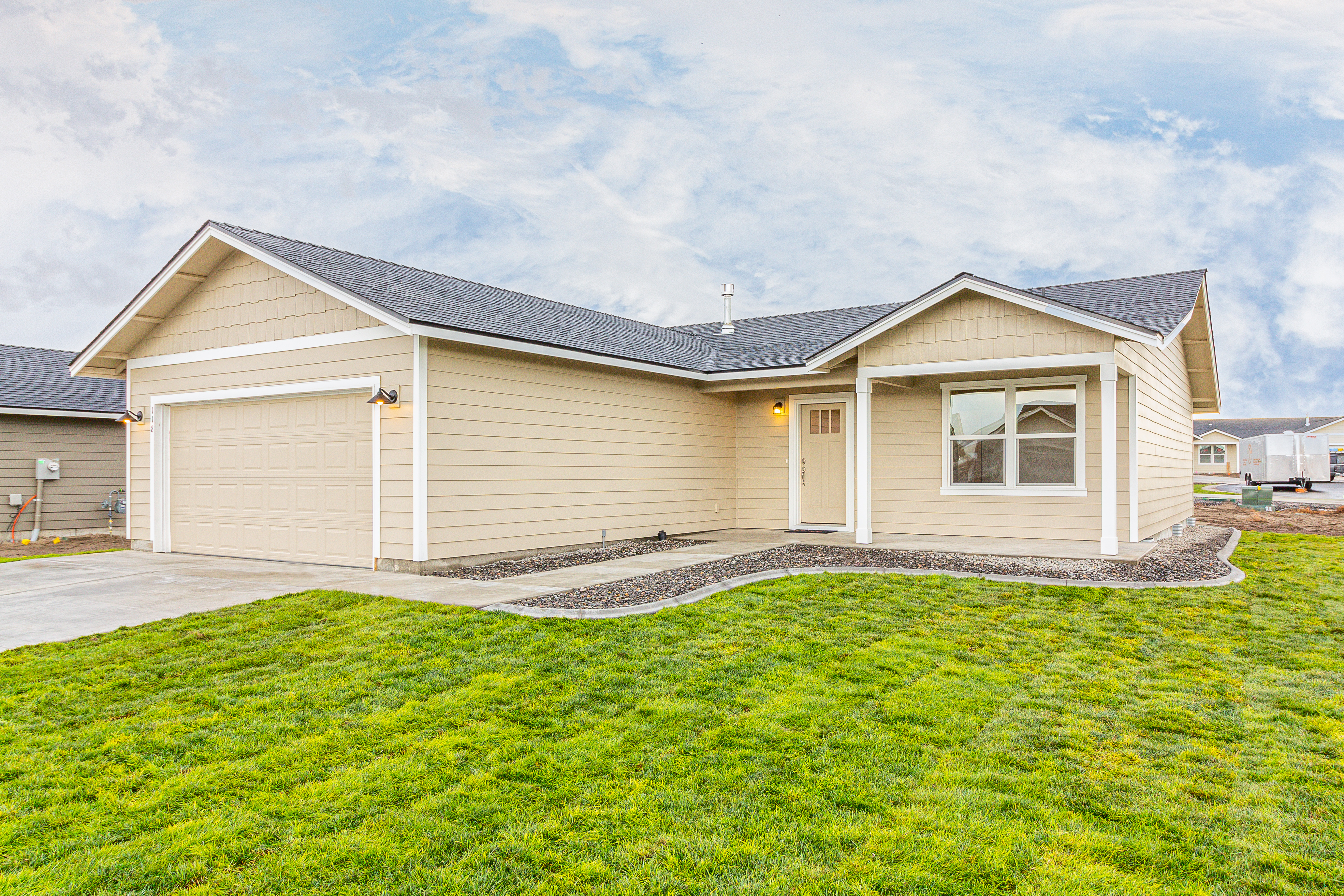 The Yucca is a 1260 SF, single story home featuring 3 bedrooms, 2 bathrooms, spacious kitchen, and Great Room in an open floor plan design.