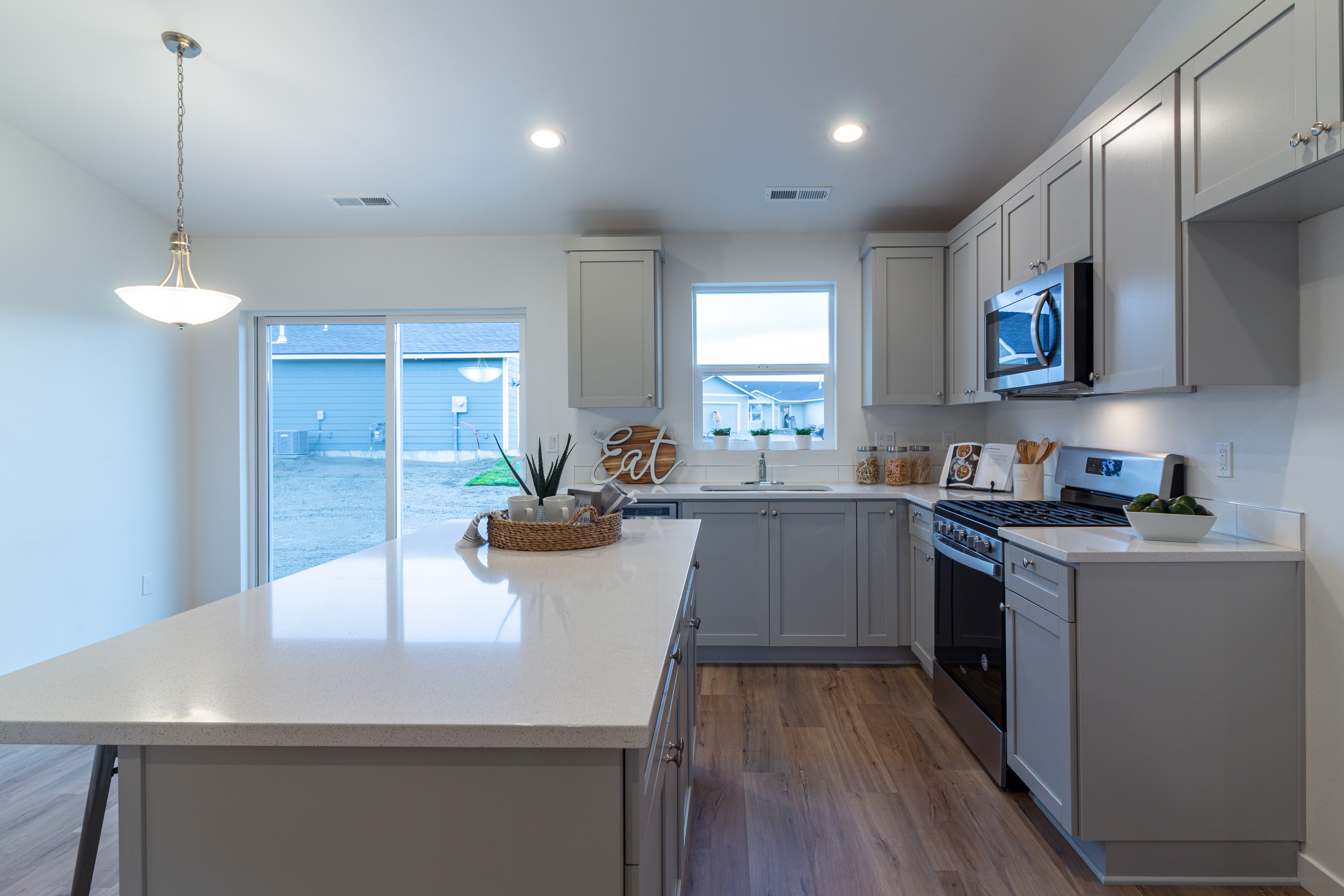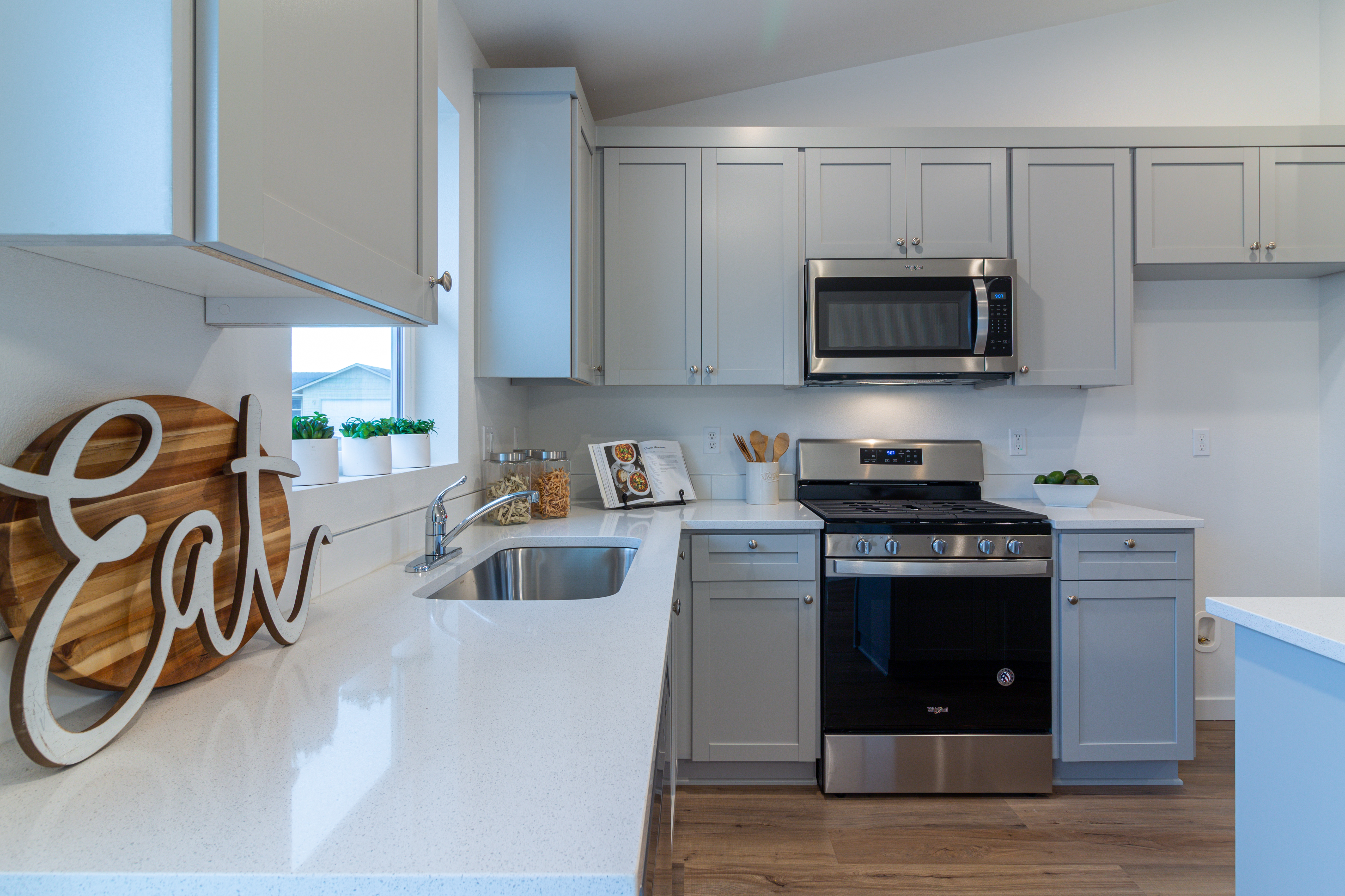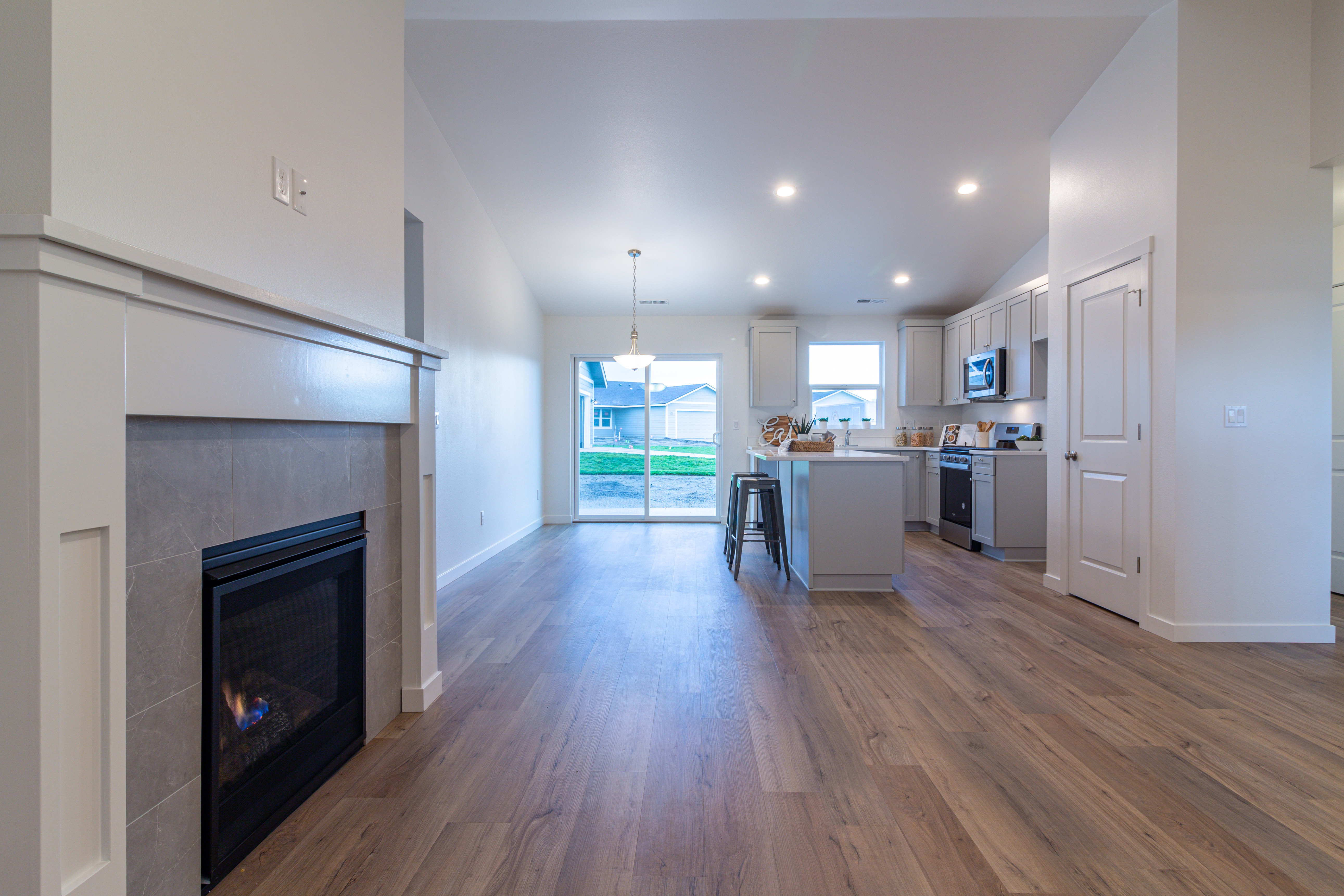 The Yucca is a 1260 SF, single story home featuring 3 bedrooms, 2 bathrooms, spacious kitchen, and Great Room in an open floor plan design.